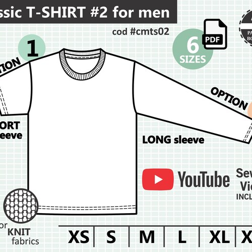 T Shirt For Men Pdf Sewing Pattern 6 Sizes Xs To Xxl Etsy